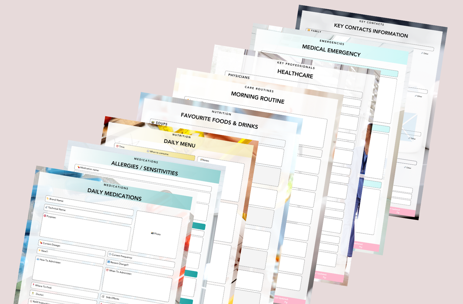 - The super-simple, 1-page template to manage all their meds, including what times of the day they need them, should they be taken before or with meals, and so much more.